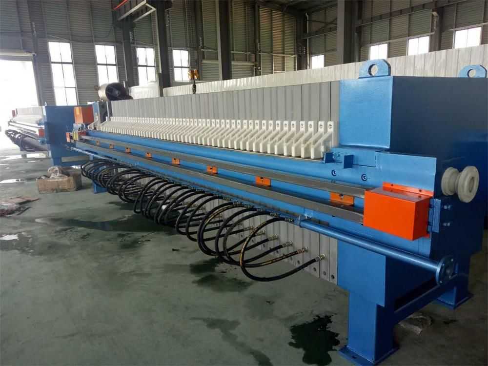 隔膜壓濾機(jī)和常規(guī)箱式壓濾機(jī)的主要區(qū)別在于,在濾板的兩側(cè)都增加了兩個彈性膜(復(fù)合橡膠膜是一個整體式膜。在操作期間,當(dāng)進(jìn)料完成時,將高壓流體介質(zhì)注入膜中,并使整個膜膨脹以過濾濾餅,以進(jìn)一步使濾餅脫水,這是壓力過濾。在隔膜壓濾機(jī)運(yùn)行期間,液壓系統(tǒng)使用液壓油作為壓力載體來傳遞內(nèi)部壓力。